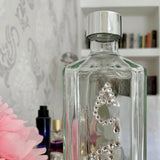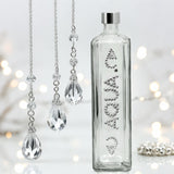MATERIAL: Aqua Carpatica borosilicate transparent glass, fine made aluminum-plastic shiny metallic silver bottle cap, real Swarovski® crystals