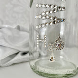 MATERIAL: borosilicate transparent glass, fine made shiny metallic silver bottle cap, real Swarovski® and Preciosa crystals