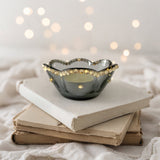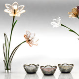 Some nights do not need words, only light, a little smoke, and the sound of your heartbeat against the silence. The crystal-embellished smoky glass FLORAL CANDLE HOLDER luxury decoration was made for that kind of evening.