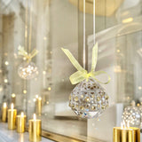 MATERIAL: Spectra laser cut clear glass crystal ball prism by Swarovski® with real Preciosa crystals, stainless steel snake chain, organza bow